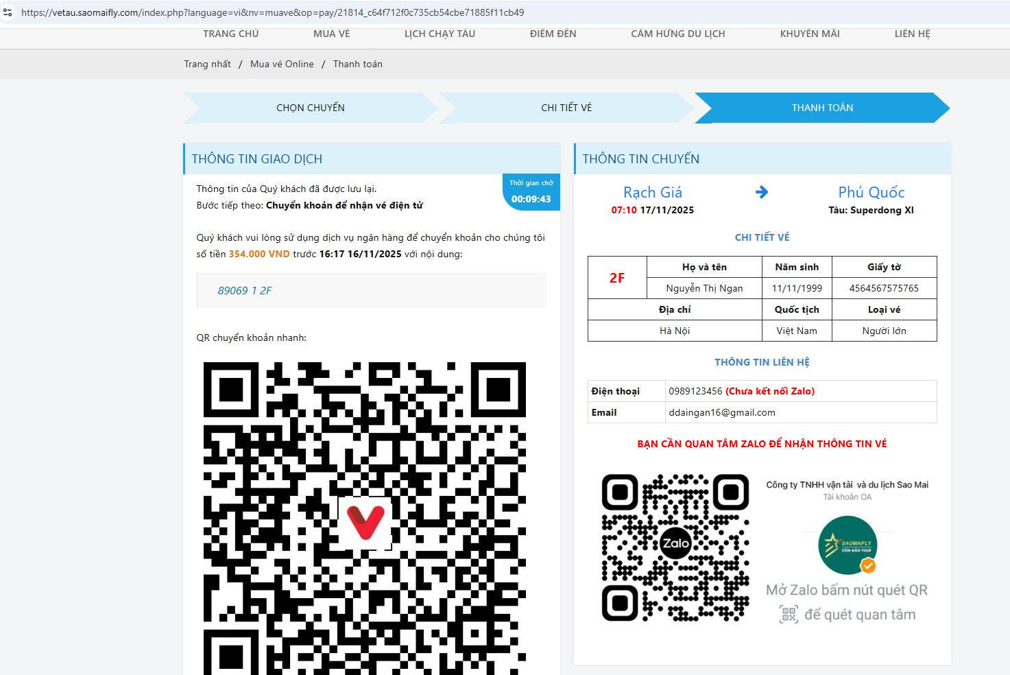 Mở trình duyệt và truy cập https://vetau.saomaifly.com/#