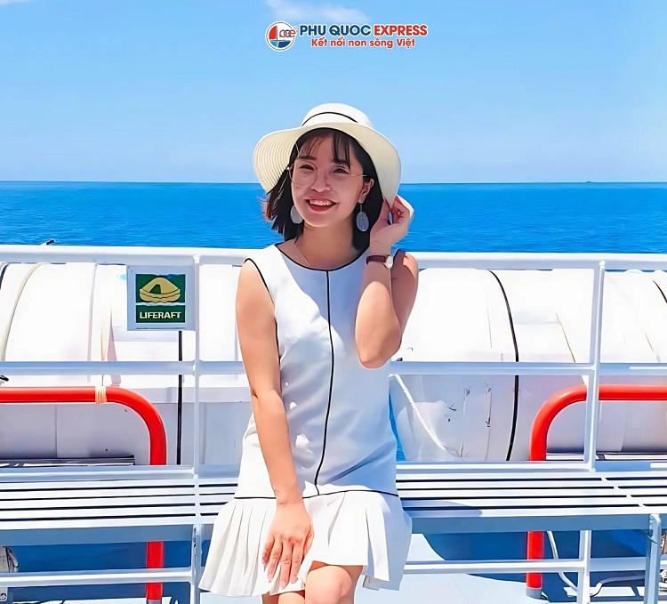 Tàu có khu check in: Tàu Phú Quốc Express có khu check-in là boong tàu ngoài trời với sức chứa 50 hành khách vừa ngắm cảnh biển đảo, vừa sống ảo thả ga.