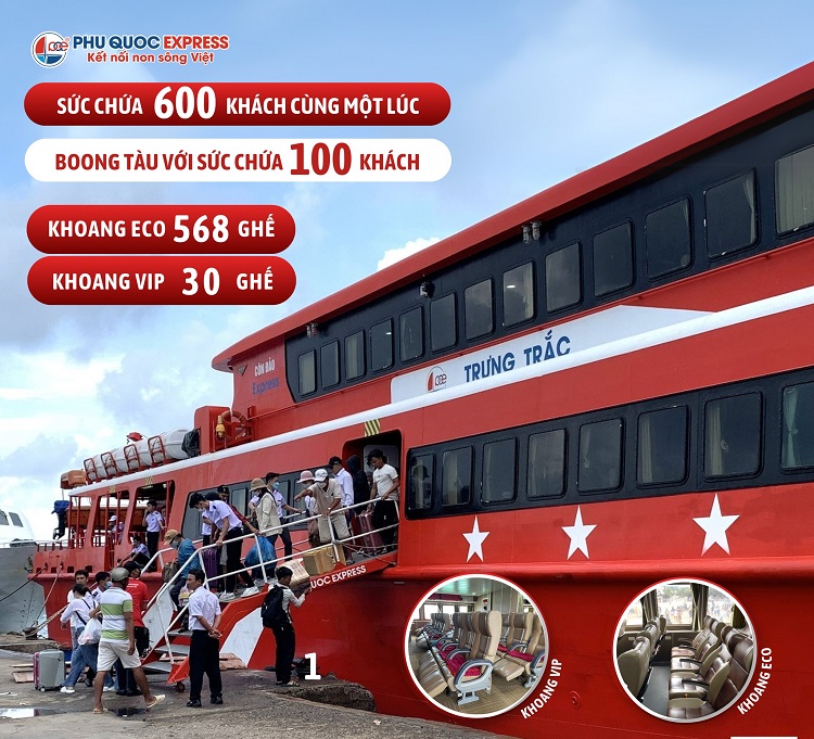 Tàu cao tốc Trưng Trắc Phan Thiết - Phú Quý thuộc đội tàu Phú Quốc Express khai thác. Thời gian di chuyển rút ngắn chỉ 2 tiếng 15 phút, đa dạng hạng ghế VIP và phổ thông, boong tàu có sức chứa lớn cùng đầy đủ tiện nghi hiện đại… tàu Trưng Trắc trở thành lựa chọn của nhiều hành khách khi đi Phú Quý hiện nay.