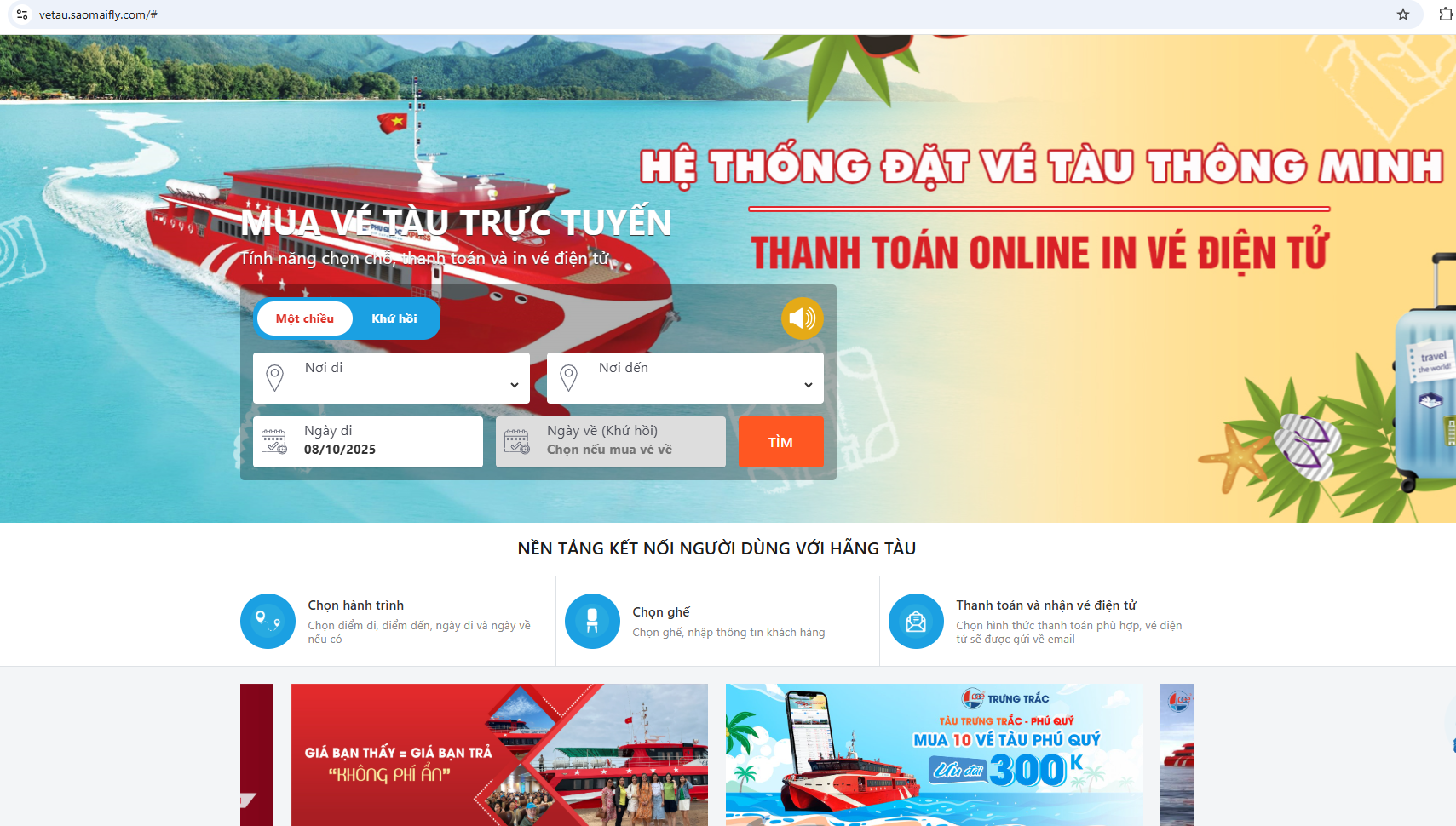 Trong kỷ nguyên số việc di chuyển bằng tàu cao tốc không chỉ dừng lại ở việc chọn phương tiện phù hợp, mà còn là trải nghiệm đặt vé nhanh chóng, tiện lợi. Chọn Saomaifly chỉ với một chạm đặt vé ngàn tiện ích.