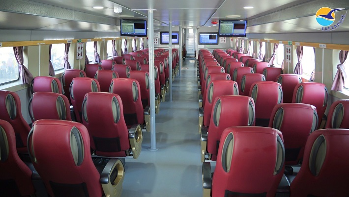Tiện nghi: Tàu có máy lạnh, ghế ngồi êm ái, tivi giải trí và nhà vệ sinh sạch sẽ. Trải nghiệm này "dễ thở" hơn rất nhiều đối với những người hay say sóng.